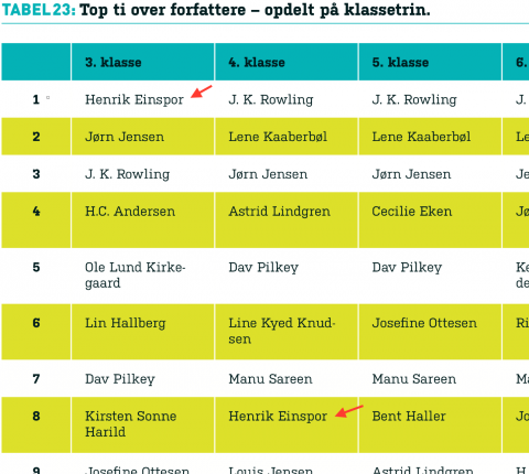 Den store danske læseundersøgelse blandt næsten 9000 danske skolebørn viste til min store glæde, at mine bøger er populære i 3. + 4. klasse.